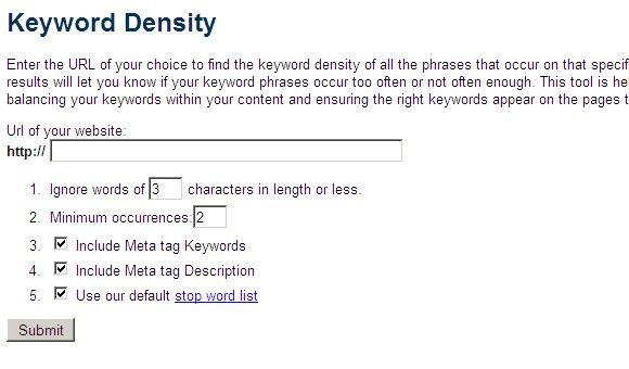 This tool helps you to analyze the density of the keywords that you typed and also pages that placed in the tags of a web.