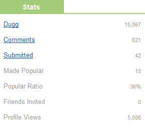 - First, you add a particular “power user” as a friend. A power user is someone who has a good ‘popular ratio’ over 20%, that is, stories he submitted that went on the front page. The most important of all, he’s active every day. To give you an idea, here are the stats of a typical Digg power user: