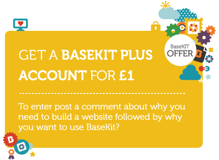We are offering a set of 10 vouchers of Plus account for £1 month over 3 months worth £30. A plus account enables you to build 3 websites with unlimited pages, 1GB storage and your own domain. To enter post a comment about why you need to build a website followed by why you want to use BaseKit? The first 10 to leave their comments will win.